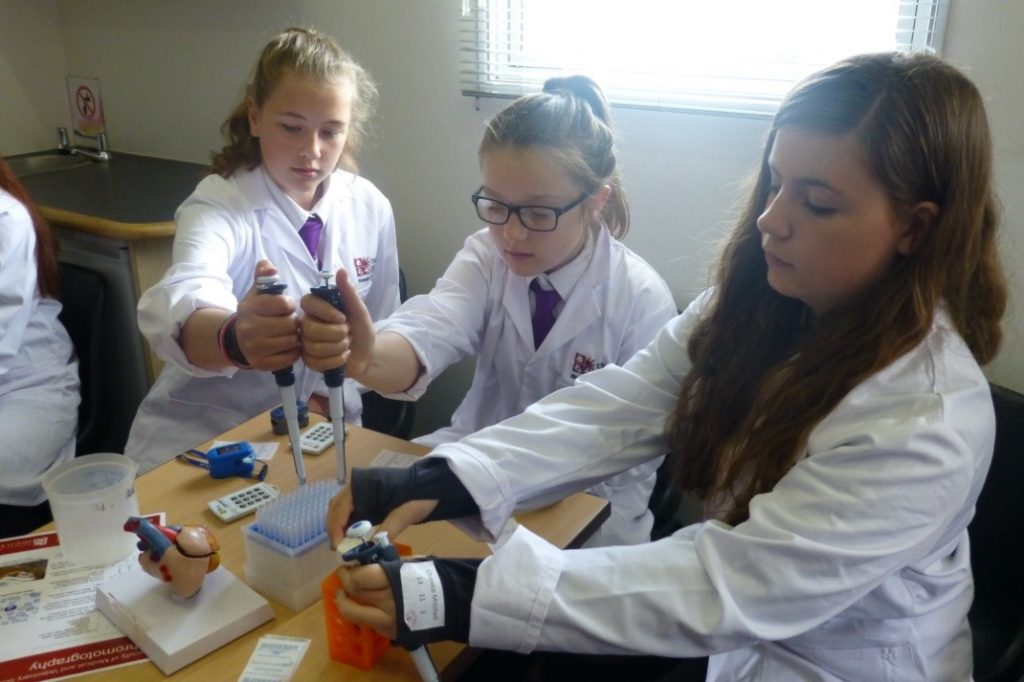 There were 13 workshops on topics ranging from flood defences to blood constituents, from smart plastics to genetics (see programme). Over 150 girls attended, each participating hands-on in 3 of the hour-long workshops over the day.